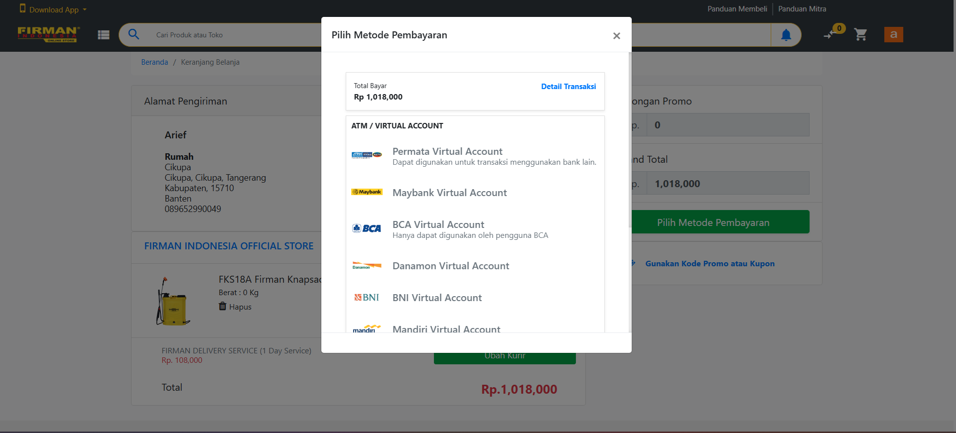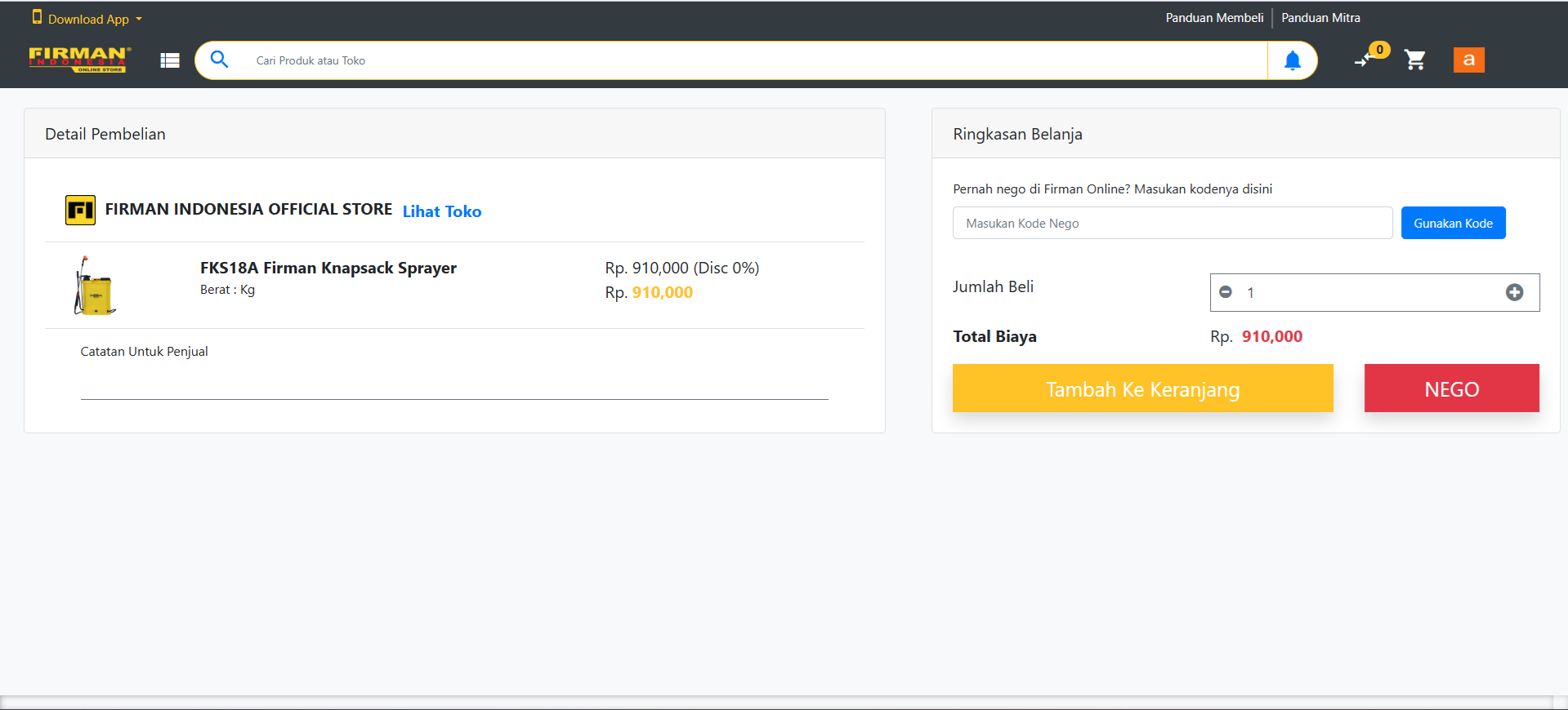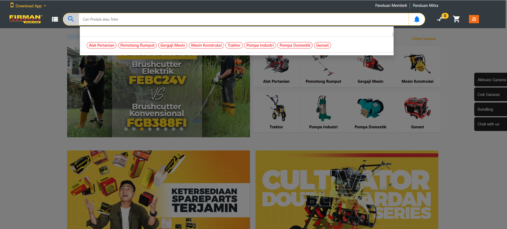 1. Temukan produk produk yang anda butuhkan di kolom pencarian pada halaman utama Firman Online.