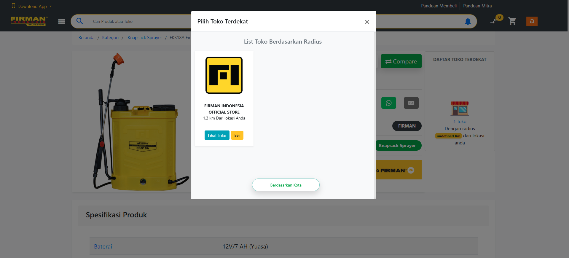 3. Silahkan pilih toko berdasarkan radius dari tempat anda berada. Radius pencarian toko dapat diubah hingga maksimal 40km.