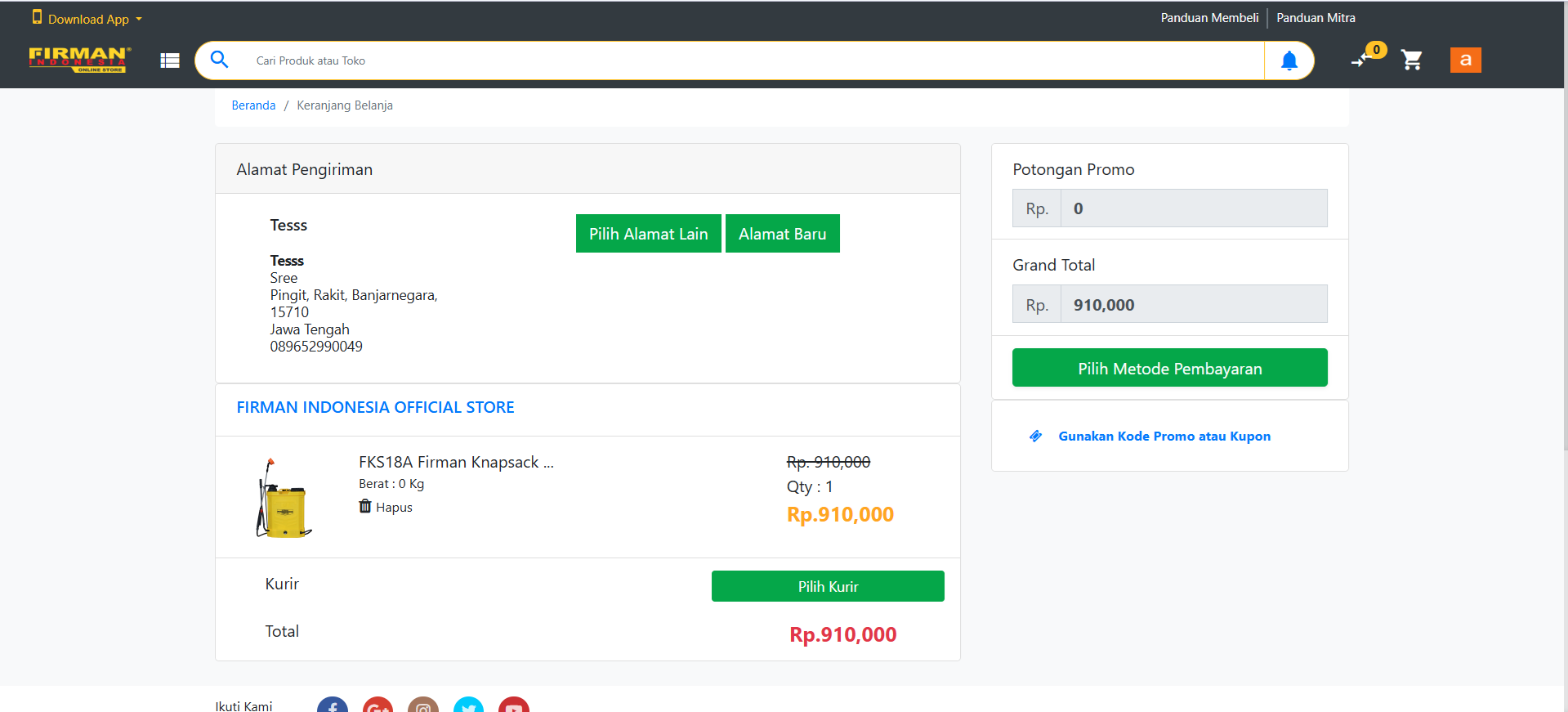 5. Setelah itu anda akan d arahkan menuju halaman keranjang belanja. Klik tombol Pilih Metode Pembayaran untuk melanjutkan pembayaran anda.